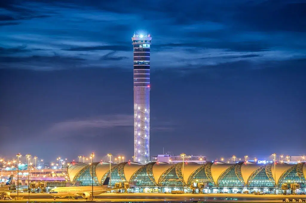 يُعتبر أحد أكبر المطارات في جنوب شرق آسيا، ويفتخر برؤية كاملة للمساحة الشاسعة التي يمتد عليها.مطار سوفارنابومي (بانكوك، تايلاند) - مطار هارتسفيلد-جاكسون أتلانتا (الولايات المتحدة): 121.3م
