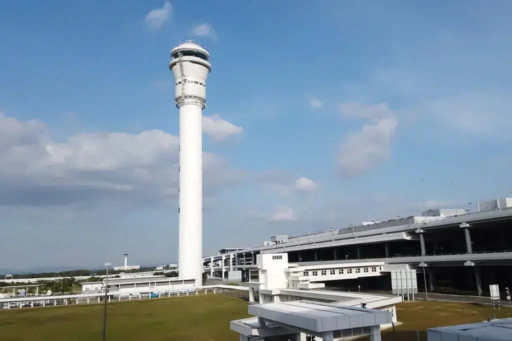 افتتح في 1998، ويتميز بتصميمه على شكل شعلة أولمبية، مما يمنح المراقبين رؤية شاملة للمطار.مطار كوالالمبور الدولي (ماليزيا) – البرج الشرقي - مطار سوفارنابومي (بانكوك، تايلاند): 132.2م