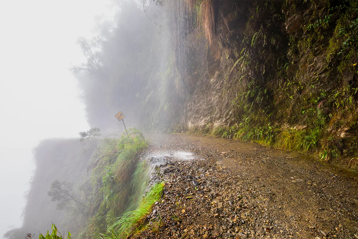 - طريق يونغاس الشمالي – طريق الموت (بوليفيا) اشتهر عالميًا بلقب “طريق الموت”، حيث كان يودي بحياة ما بين 200 و300 شخص سنويًا قبل إنشاء طريق بديل أكثر أمانًا. يمتد لمسافة 64 كيلومترًا، وهو مسار ترابي ضيق تحجبه الضباب والأمطار، مع حركة مرور متعاكسة على حافة منحدرات قاتلة.