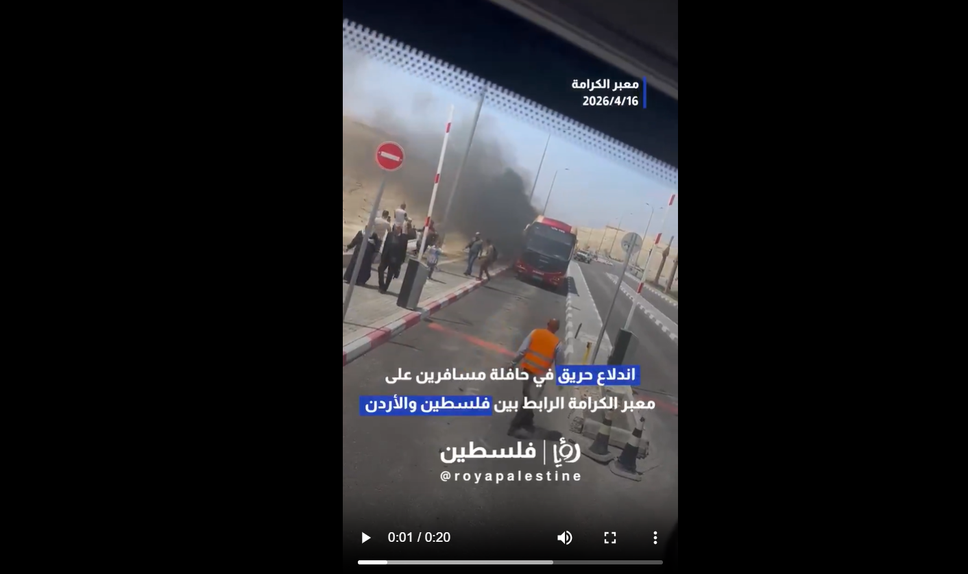 أنباء عن حريق حافلة على معبر الكرامة تثير الجدل على مواقع التواصل